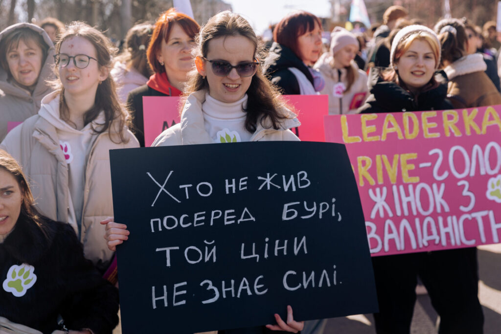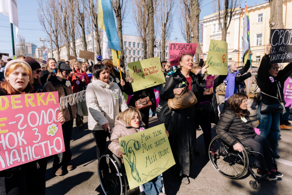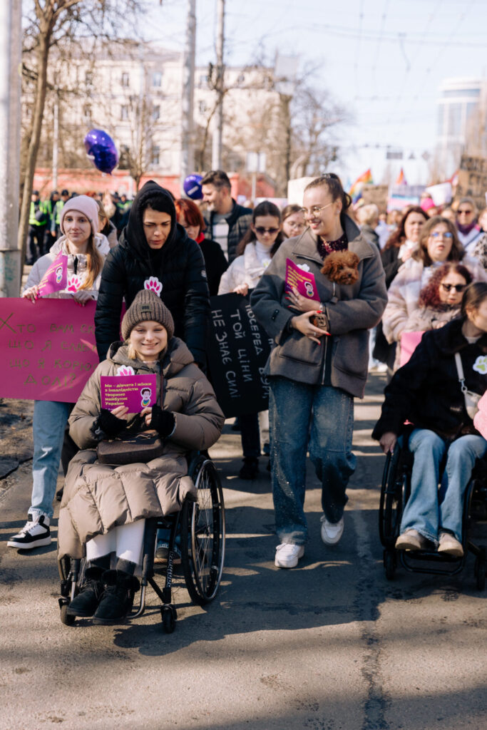 Alongside three thousand other women and girls, we called for deinstitutionalization in Ukraine, the release of women from russian captivity, and the protection of our rights. We urged against restrictions proposed in the new draft of the Civil Code and the adoption of Draft Law No. 13037, which aims to combat harassment and discrimination within the army.