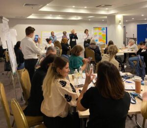 - Учасники й учасниці перед великою ментальною картою. На ній перераховані тенденції щодо статусу інклюзії. Фото: IBB gGmbH – Роман Шиян
