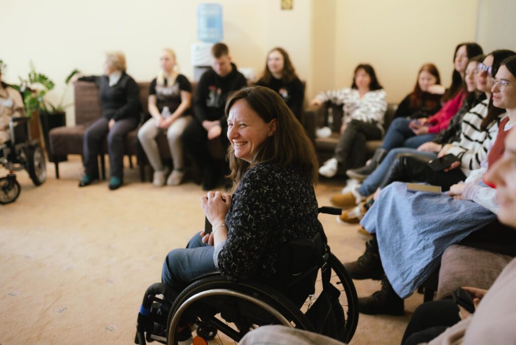 «Я, м’яко кажучи, до ретриту була вже дуже змучена, дзвінки отримувала без вихідних… Хоча я не вважаю, що щось масштабне роблю. Але ретрит у Карпатах по-справжньому дав змогу перезавантажитися, – розповідає дівчина. – Це були насичені декілька днів, за які мала змогу познайомитися з чудовими жінками та дівчатами з інвалідністю. У нас були надихаючі тренінги та онлайн зустрічі з запрошеними спікерками. Під час лекцій ми часто працювали в групах або в парах, що давало можливість познайомитися ближче. Там були мами дітей з інвалідністю, мені було цікаво послухати їхні історії. У мене мама теж активно відстоює права людей з інвалідністю, але коли я була маленька, про інвалідність так гучно не говорили».