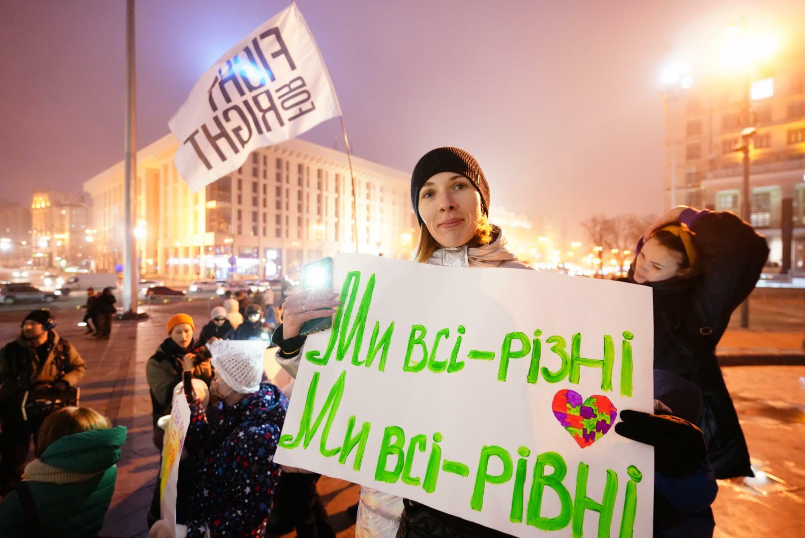 Громадська організація Fight For Right провела першу в Україні акцію видимості людей з інвалідністю Lights for Rights. Подія відбулася у Києві на Майдані Незалежності 12 грудня.
