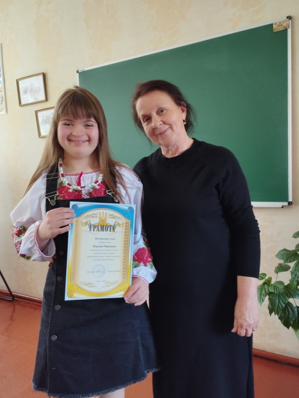 Вероніка вміє читати, любить історію, може вивчити невеликий вірш, важко їй дається тільки математика. Щоб донька краще розвивала усне мовлення, батьки віддали її у вокальний ансамбль “Зернятко”. Вероніці так сподобалося, що вона не уявляє свого життя без співів. Нещодавно вона зайняла друге місце в онлайн-конкурсі вокального мистецтва серед дівчат з інвалідністю.