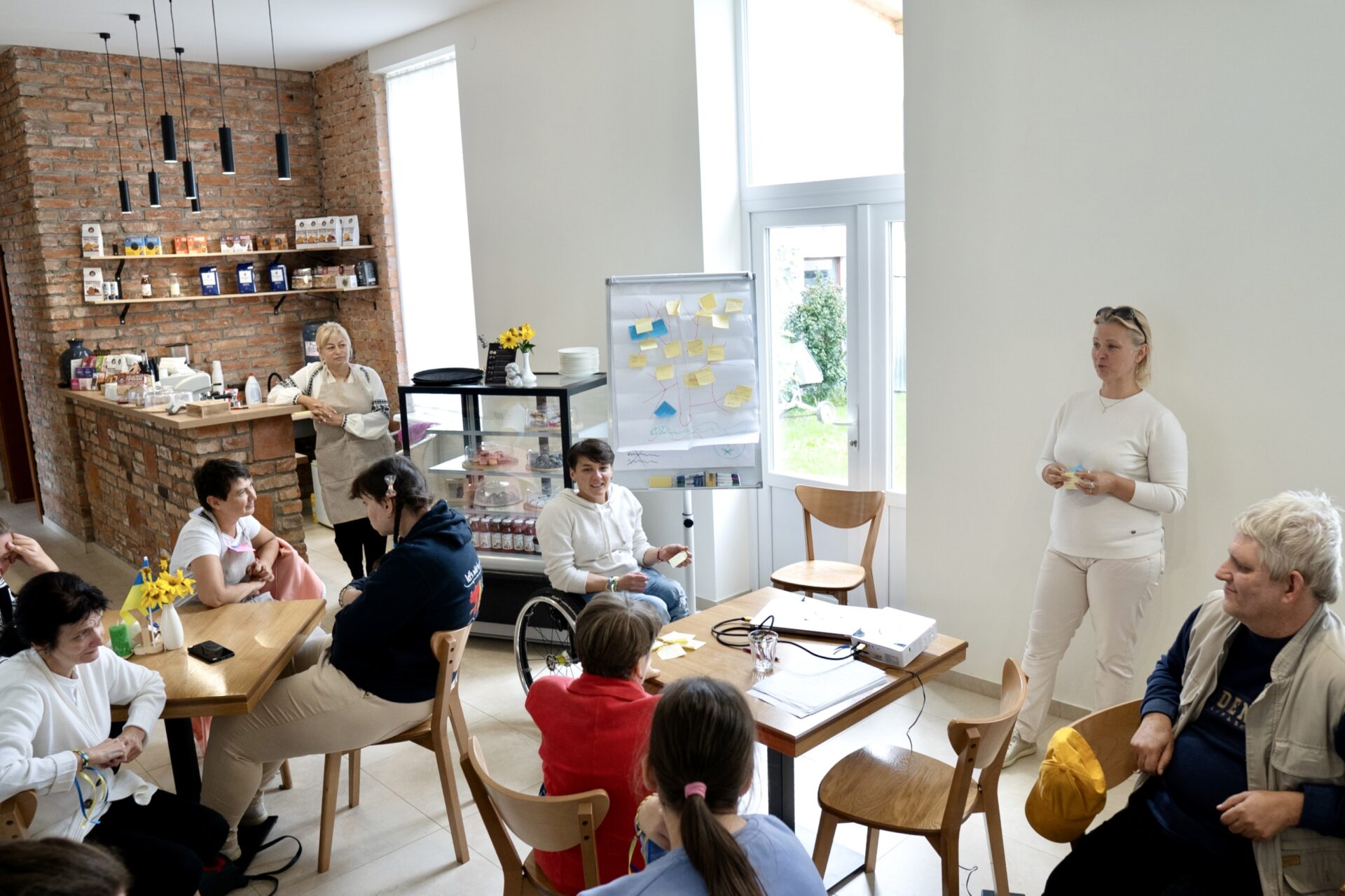 Одна з учасниць Наталя, до прикладу, часто приносила квіти зі свого квітника, щоб зробити кав’ярню “Янгол” красивішою і комфортнішою. Мрія Наталі – працювати та заробляти, щоб вистачало на власні потреби, на ремонт, на ліки, на подорожі. Зокрема на комп’ютер, щоб спілкуватися з друзями, які виїхали за кордон.