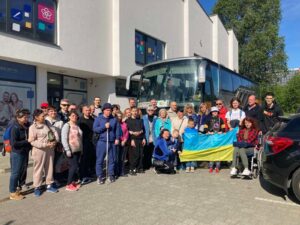 Група людей з інвалідністю під час евакуації. Фото з фейсбуку Валентини Бутенко