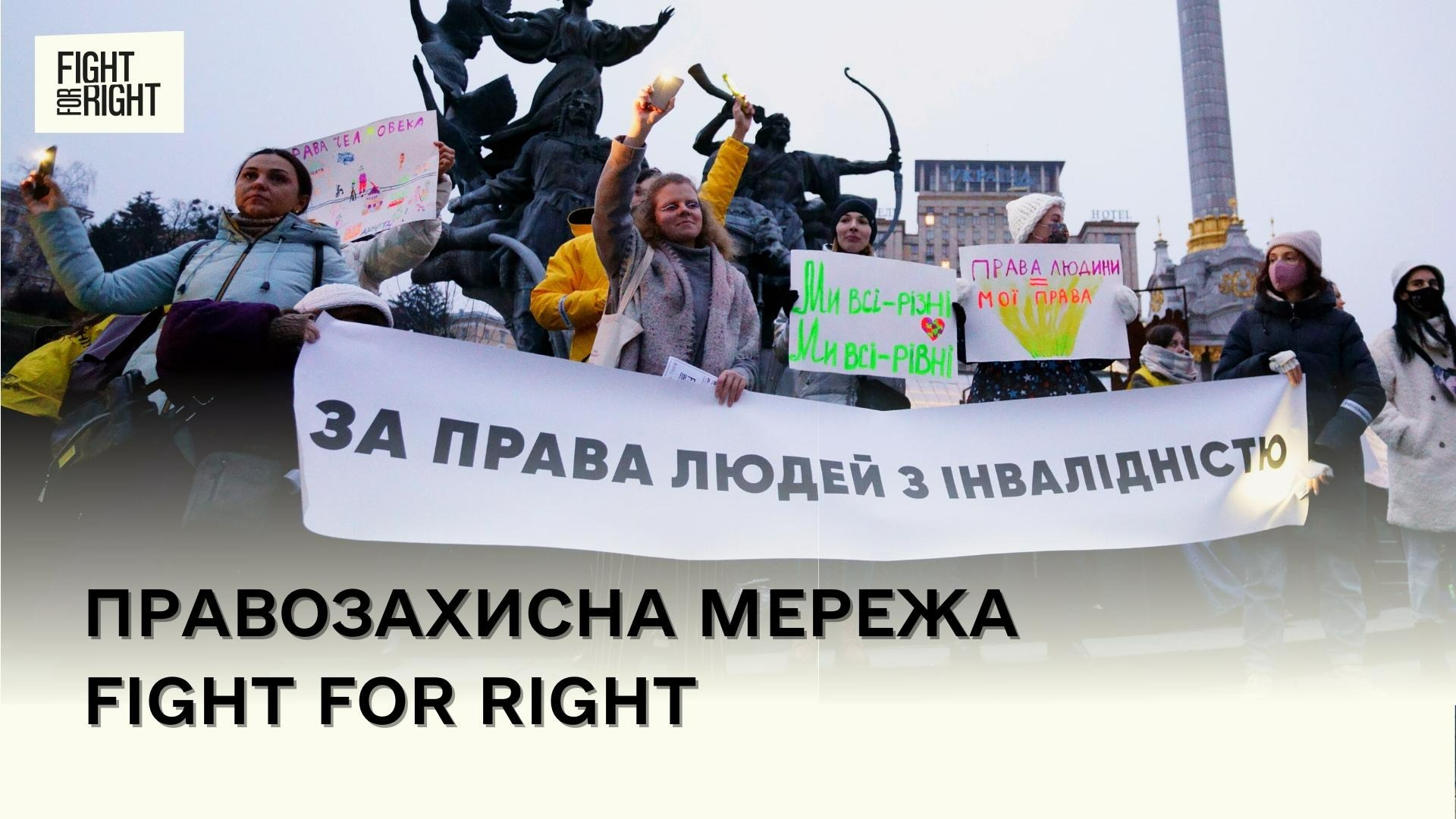 Мережа Fight For Right – це правозахист, активізм, рух та боротьба за права людей з інвалідністю. Основна мета Мережі – бути майданчиком для спільного посилення руху за права людей з інвалідністю. А також – це спілкування, навчання, спільні ініціативи, акції, подорожі, зростання та підтримка у прагненні покращити ситуацію з дотриманням прав людей з інвалідністю в Україні. Це постійна допомога від команди організації Fight For Right у впровадженні правозахисних ідей, розвитку та захисті прав. Це нові можливості, ресурси та найкращі експерти й експертки. Це простір безпеки, солідарності та найяскравіших правозахисних активностей.