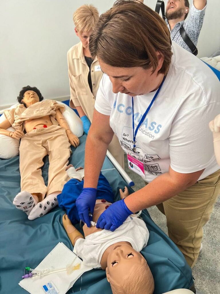 Анна Яцульчак демонструє на манекенах використання гастростомічної трубки (фото з Facebook-сторінки Анни Яцульчак)