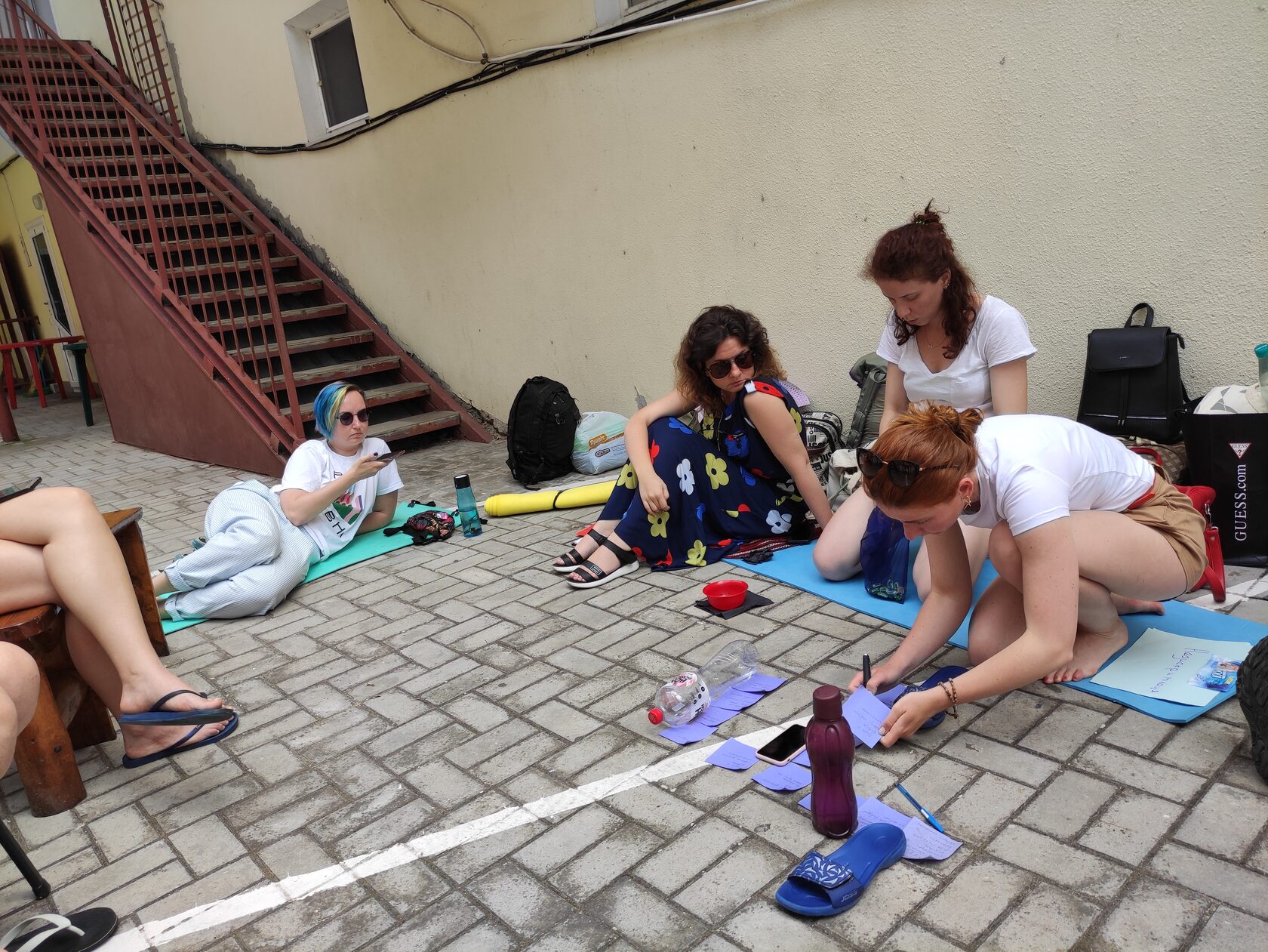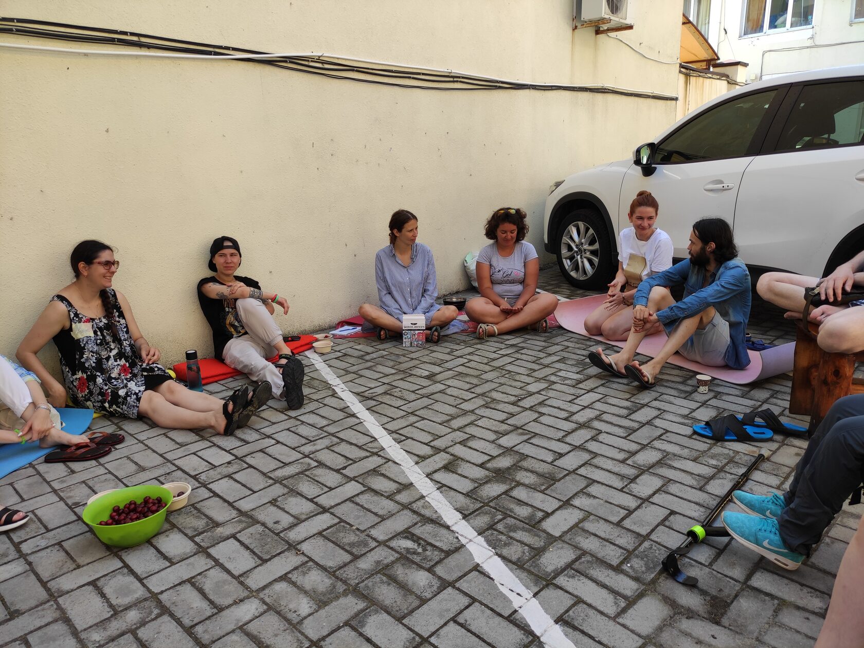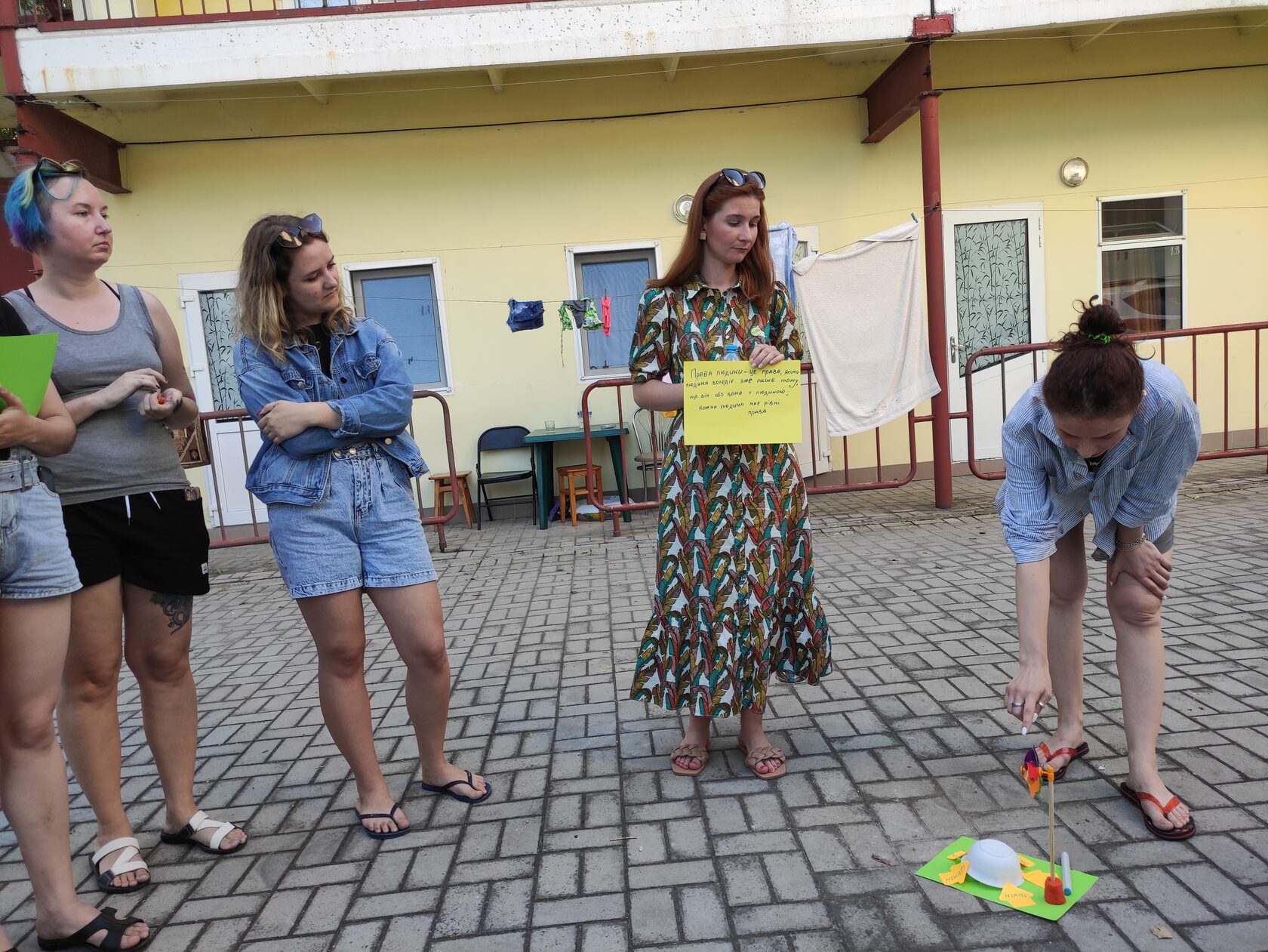 Тут достатньо простору для сімейних розмов біля кімнати, але не так багато місця для навчального процесу. Утім, ми розмістилися прямо у подвір’ї, і з нами правам людини «навчалися» ще й всі охочі відпочивальники.