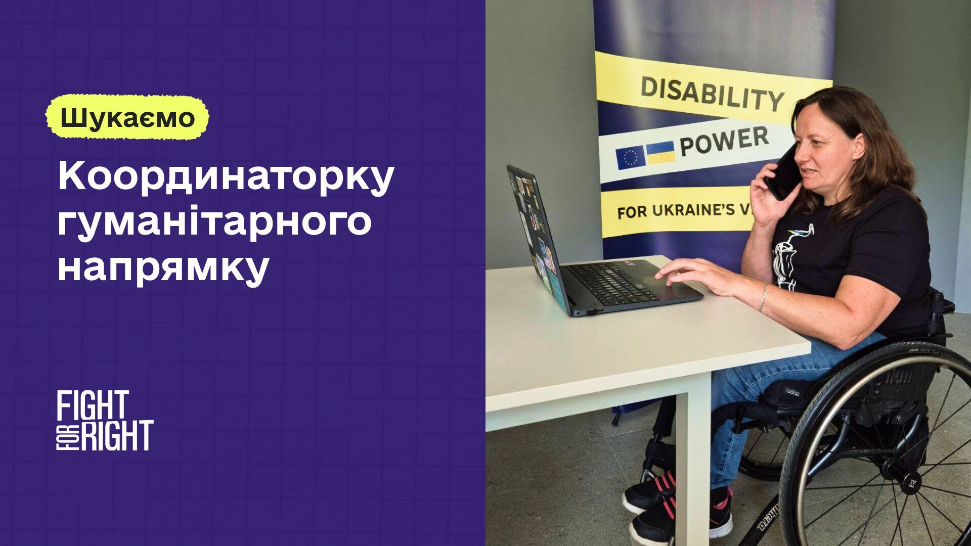 Проєкт «Лідерство жінок з інвалідністю в громадах» впроваджується Fight For Right за технічної підтримки ООН Жінки в Україні та за фінансування Жіночого фонду миру та гуманітарної допомоги ООН (WPHF), гнучкого та оперативного інструменту фінансування, що підтримує якісні заходи для підвищення спроможності місцевих жінок у запобіганні конфліктам, реагуванні на кризи та надзвичайні ситуації та використання ключових можливостей миробудівництва.