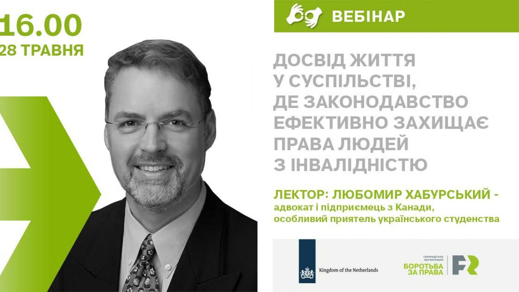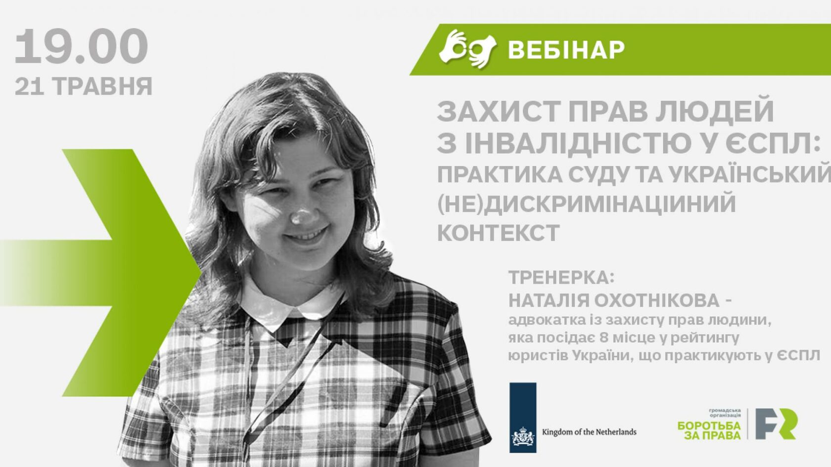 Вебінар організовано в межах проекту «Fight For Right: Зміцнення захисту прав людей з інвалідністю», який виконується за підтримки Фонду прав людини Посольства Королівства Нідерландів в Україні.