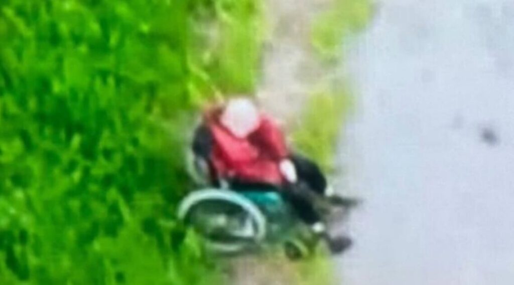 У публікації з телеграм-каналу журналіста Андрія Цаплієнка «ЦАПЛІЄНКО_UKRAINE FIGHTS» ідеться, що аеророзвідники під час моніторингу повітряного простору над м. Вовчанськом Харківської області виявили загиблу людину в кріслі колісному неподалік місцевої лікарні, яку захопили російські військовослужбовці.