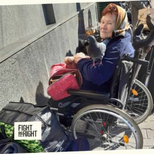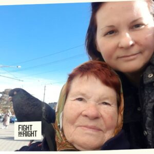 Ірина, її 86-річна мама Ганна, яка пересувається на кріслі колісному, та голуб Сірожа евакуювалися із Запоріжжя до Чехії. Порятунок організувала громадська організація Fight For Right. Від самого початку все було непросто. По-перше, мама Ганна потребувала ортопедичного взуття, яке виготовляється на замовлення, і потрібно було зачекати. А по-друге… на птаха потрібно було оформити спеціальні документи на виїзд за кордон. Зрештою, наприкінці літа у мами Ганни було взуття, а в голуба – паспорт.