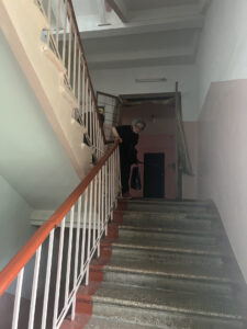 Спілкуюся з десятками людей з інвалідністю. Ледь встигаю записувати їхні потреби в нотатки, а в контакти – номери телефонів, щоб передати нашим кейс-менеджеркам для подальшого опрацювання. Не витримуючи болю людей, виходжу на вулицю. Бачу молоду жінку з сином. Знайомимося, розповідає про тата, який теж тепер з інвалідністю, нещодавно отримав поранення на фронті. Присідаю біля людей на лавочці. Більшість із них старшого віку, більшість продовжують жити в рідних домівках, згадують людей і події, і мало говорять про майбутнє, аби лише не прилетіло сьогодні.
