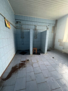 У найбільшому транзитному центрі я зразу зустрічаю щойно евакуйованого з-під Вовчанська молодого чоловіка з родиною. Його мама усміхається, розповідаючи про життя під обстрілами вдома. Бо життя було в рідному домі, який вони не хотіли залишати. Про інвалідність сина говорить мало і стримано. Дивлячись на стареньке крісло колісне, думаю про нове, чи буде в родини доступне житло… Помічаю в центрі пандус, питаю про доступний туалет – його немає. Перед входом до центру багато палаток гуманітарних організацій, виглядає наче виставка. У жодній не трапилася інформація про допомогу саме людям з інвалідністю.